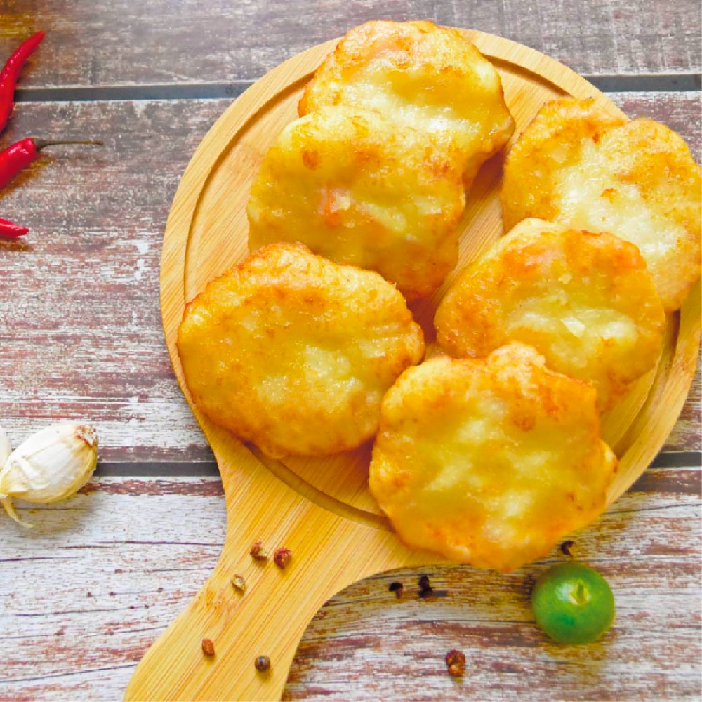 真材實料加上專業職人的手工打漿,裹上金黃麵包粉,簡單酥炸烘烤,厚實飽滿吃的到花枝,讓你一口接一口。