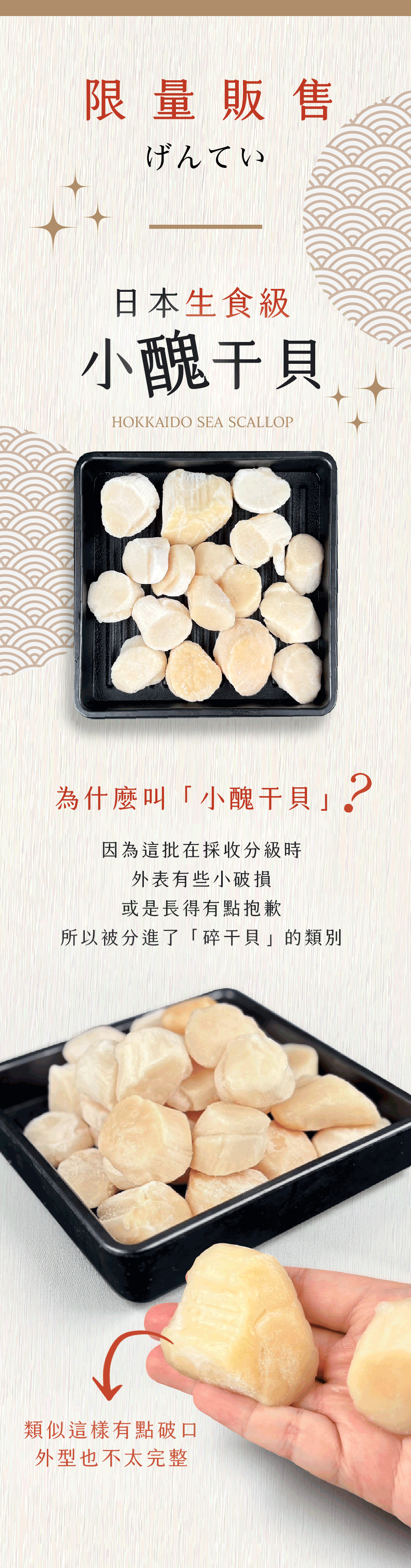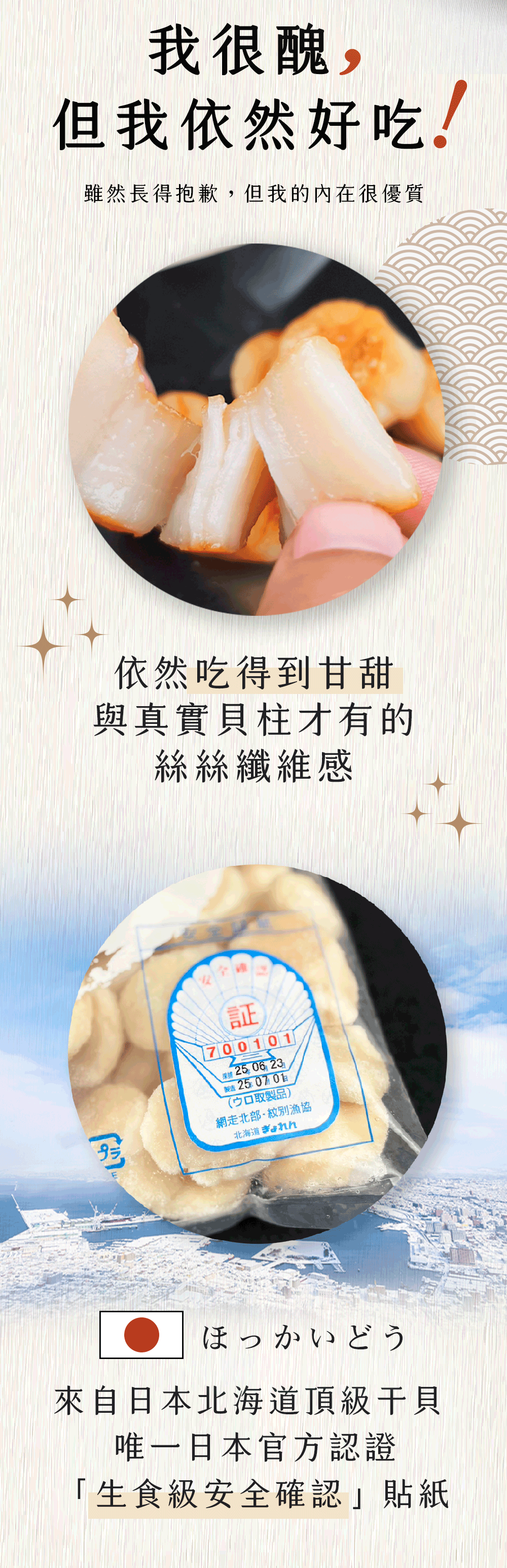 雖然外表長得比較抱歉, 但我的鮮度、甜度、軟嫩度, 絕對不輸給那些干貝模範生!