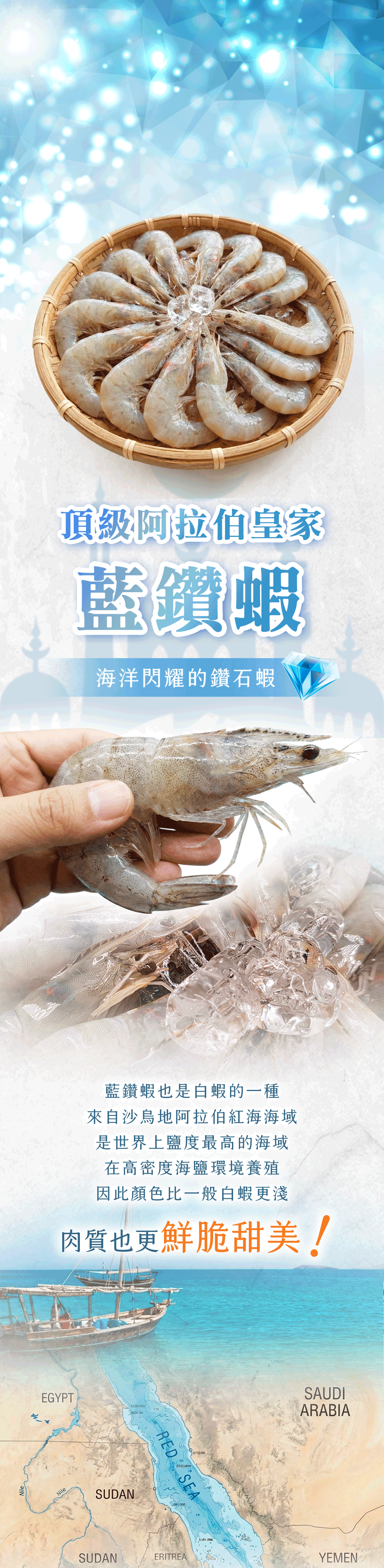 品名:頂級阿拉伯藍鑽蝦(大規格)